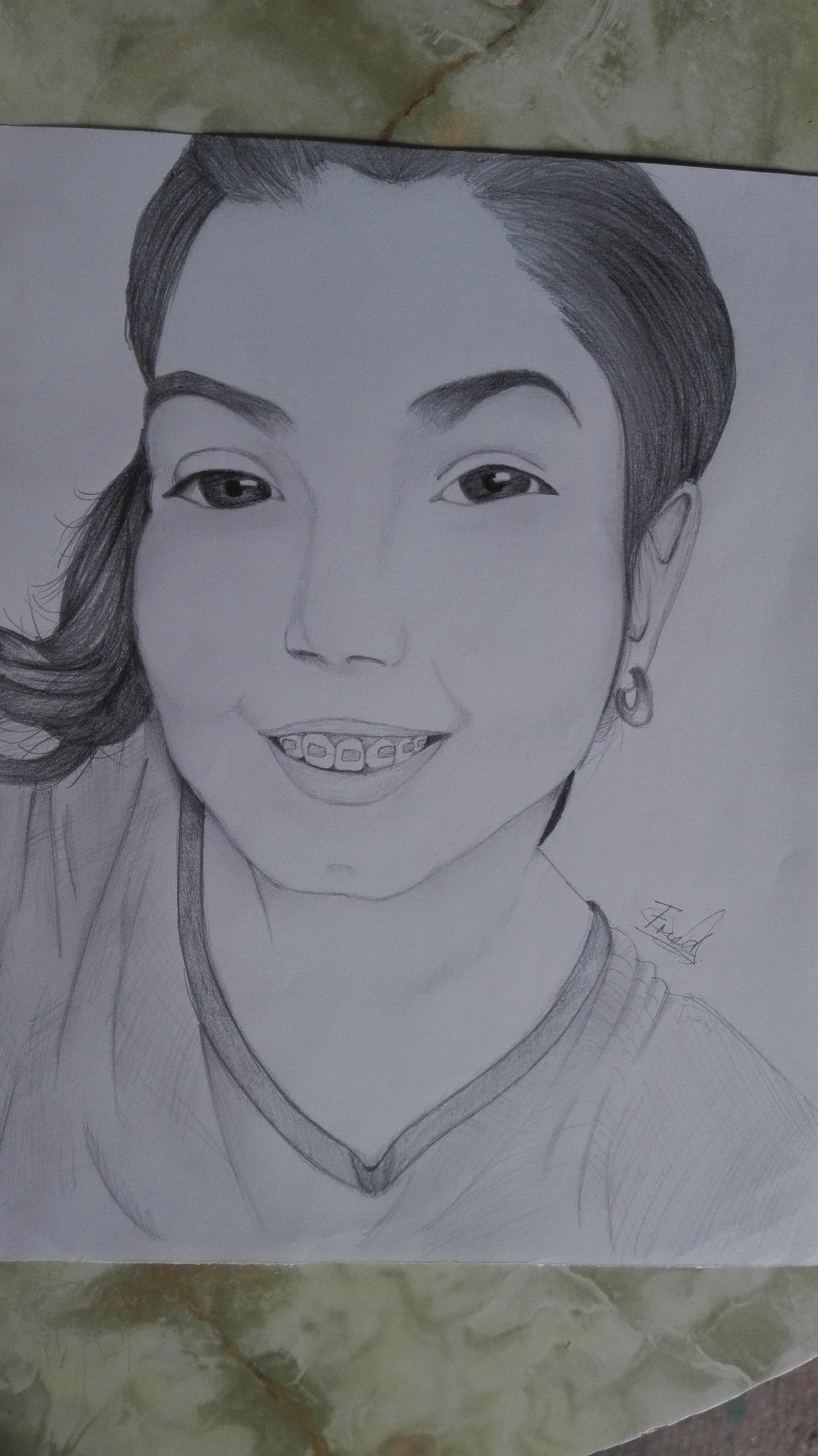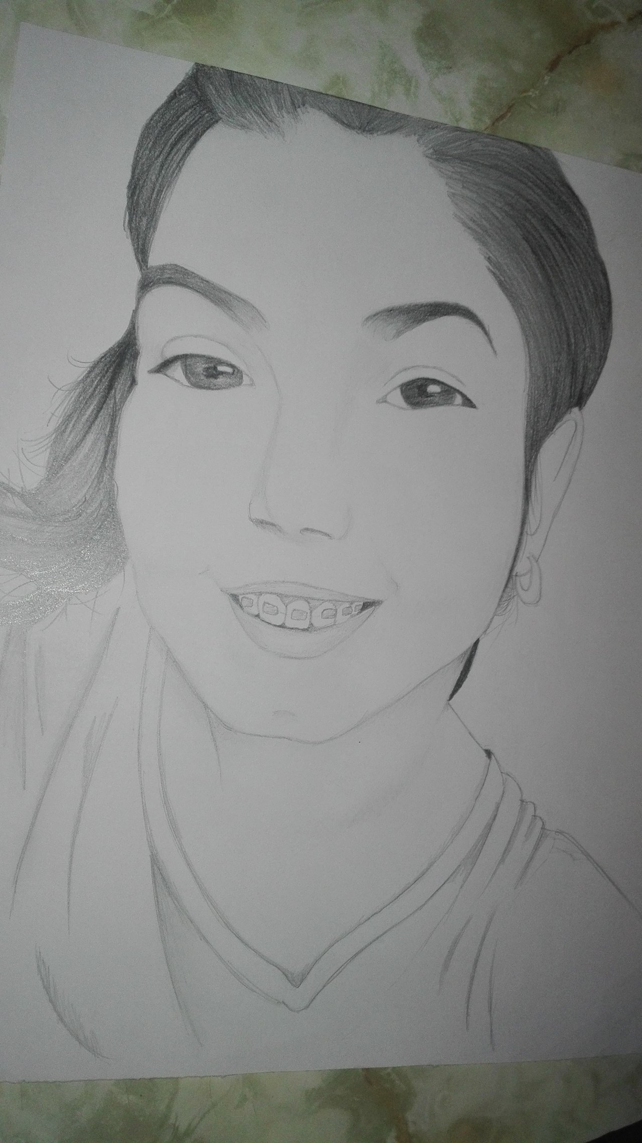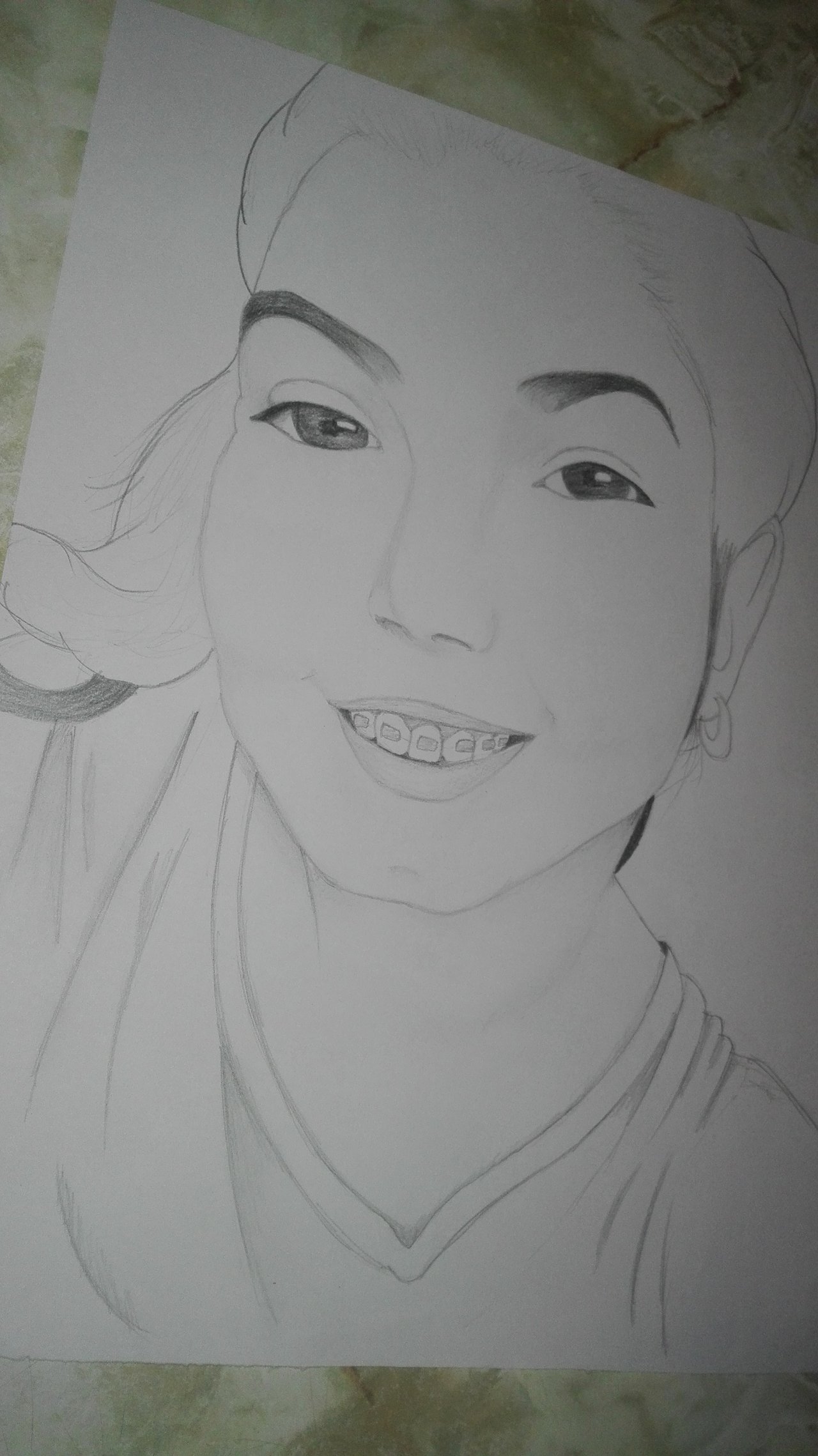 3rd step, we continue shading the different areas of the face, and then we start with the hair, trying to make it look as good as possible, and without messing it up because it loses quality and realism the drawing