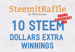 funfactory(25)•in #steemit•3464 days ago4th - SteemitRaffle - 25 STEEM DOLLARS FOR THE FIRST 50 UPVOTERSVOTE & WIN STEEM DAILY - ONE VOTE ONE TICKET - 25 STEEM DOLLARS FOR THE FIRST 50 UPVOTERS - 5 STEEM DOLLARS EXTRA IN THE POT --- --- NOTE: Winners of this curre...21funfactory(25)•in steemit•3464 days ago4th - SteemitRaffle - 25 STEEM DOLLARS FOR THE FIRST 50 UPVOTERSVOTE & WIN STEEM DAILY - ONE VOTE ONE TICKET - 25 STEEM DOLLARS FOR THE FIRST 50 UPVOTERS - 5 STEEM DOLLARS EXTRA IN THE POT --- --- NOTE: Winners of this curre...21