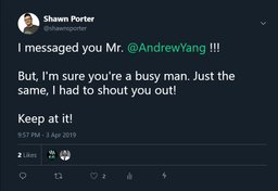shawnsporter(25)•in #steem•2475 days agoA Pile On has begun...to get Andrew Yang on @thesteemingpile..won't you join us?Since being followed by Mr. Yang a few months back, I recently reached out and invited him on @thesteemingpile! Andrew Yang is a 2020 US Presidential Candidate ...2shawnsporter(25)•in steem•2475 days agoA Pile On has begun...to get Andrew Yang on @thesteemingpile..won't you join us?Since being followed by Mr. Yang a few months back, I recently reached out and invited him on @thesteemingpile! Andrew Yang is a 2020 US Presidential Candidate ...2
