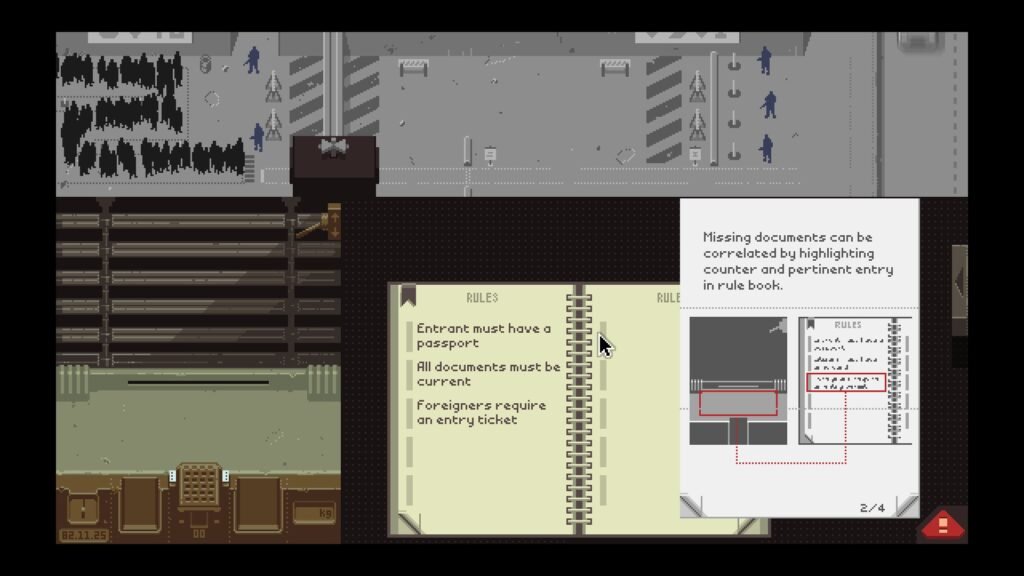 What really adds to the difficulty is that each day only lasts a few real world minutes and you are paid based on how many people you successfully process. Mistakes earn you citations. Get enough citations in a day and your pay will be negatively impacted. So you are trying to get as many passports checks as you can, as quickly as you can, without making any mistakes.