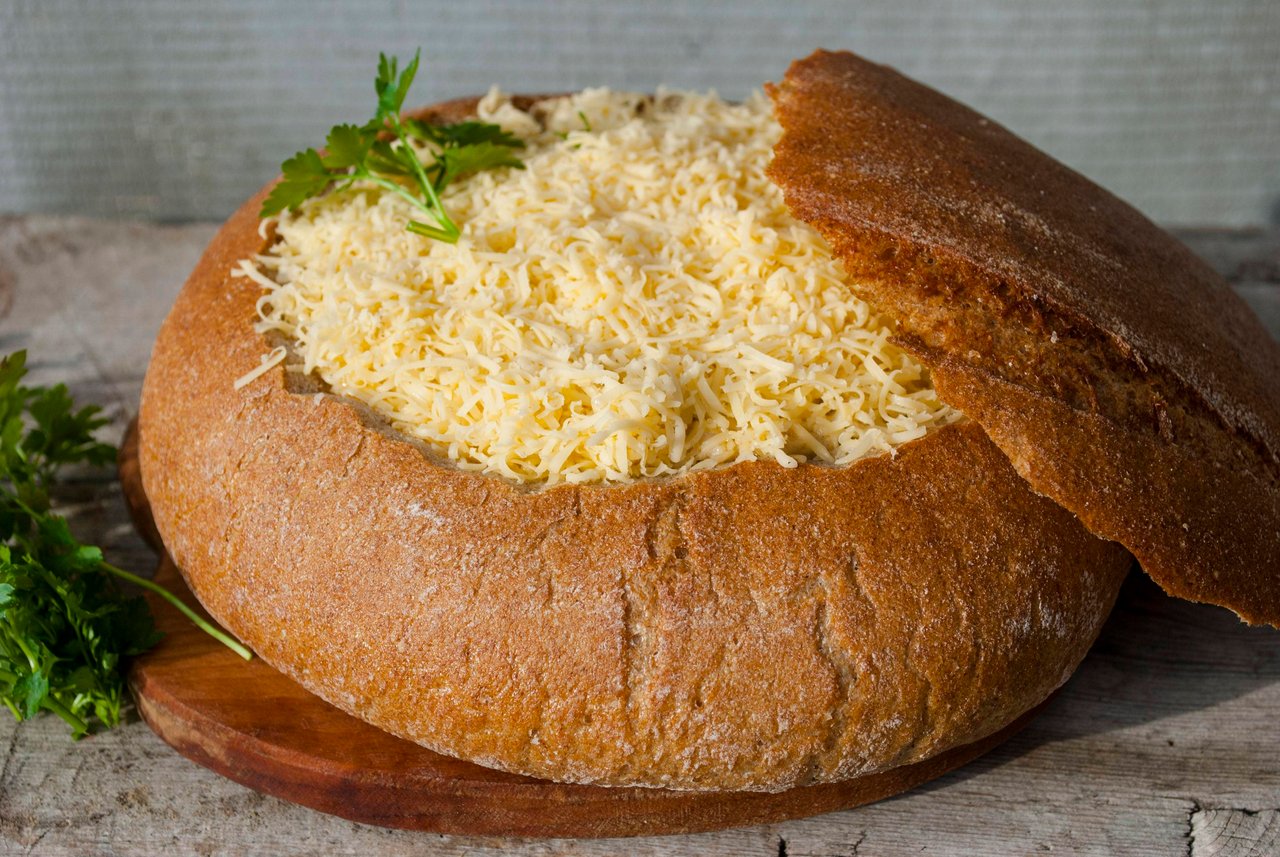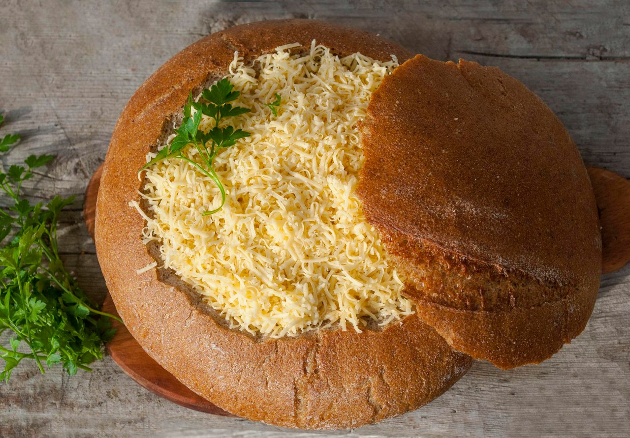 I make a container with a lid of bread. Cleaning Crumbs. Ready mix. From above I rub cheese on a small grater.