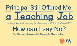 go2sheila(25)•in #education•3094 days agoWhy I Went Back to the Classroom and 7 Major Things I Learned While Working for MyselfHow can I say no to this principal? He offered me the job even though I said I'll go back to teaching because I want to sell better products at Teachers p...56$0.01go2sheila(25)•in education•3094 days agoWhy I Went Back to the Classroom and 7 Major Things I Learned While Working for MyselfHow can I say no to this principal? He offered me the job even though I said I'll go back to teaching because I want to sell better products at Teachers p...56$0.01