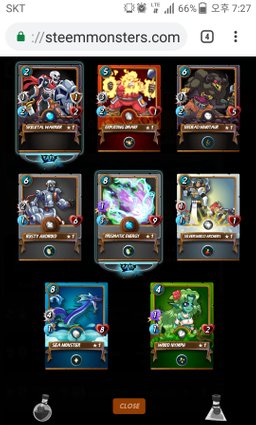 happy33(25)•in #steemmonsters•2391 days ago2019년 6월 30일 스팀몬스터 일일퀘스트 보상결과스팀몬스터 일일퀘스트 완료 후 받은 보상카드들입니다. 오늘은 모두 평범한 카드 뿐이네요^^ 다이아몬드1 리그에도입성했습니다. 운이 좋게도 고랩분들 상대로 연승에 성공했습니다^^ 챔피언리그를 행해 고고고!!! 내일은 레전드 카드를 기대하며.... 스팀몬스터 화이팅~~~ --- Sponso...2happy33(25)•in steemmonsters•2391 days ago2019년 6월 30일 스팀몬스터 일일퀘스트 보상결과스팀몬스터 일일퀘스트 완료 후 받은 보상카드들입니다. 오늘은 모두 평범한 카드 뿐이네요^^ 다이아몬드1 리그에도입성했습니다. 운이 좋게도 고랩분들 상대로 연승에 성공했습니다^^ 챔피언리그를 행해 고고고!!! 내일은 레전드 카드를 기대하며.... 스팀몬스터 화이팅~~~ --- Sponso...2