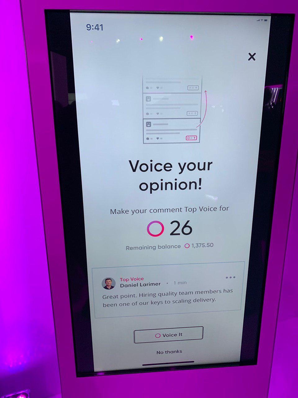 So let me explain a bit more about the game theory behind voice, because it’s subtle but powerful. Imagine each post is like a pixel on pixel master. When you find good content you voice it. As long as you are not the last to voice it you profit in voice tokens. If you are the last your content is more visible and has more chance to earn likes.