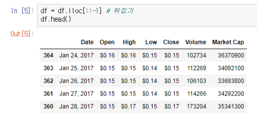 그리고, 시간 순으로 하기 위해 한 번 뒤집어주겠습니다.