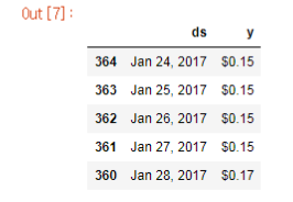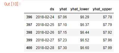 페이스북의 fbprophet을 통해, 2018년 2월 28일 종가는 $7.30으로 예측되었습니다!