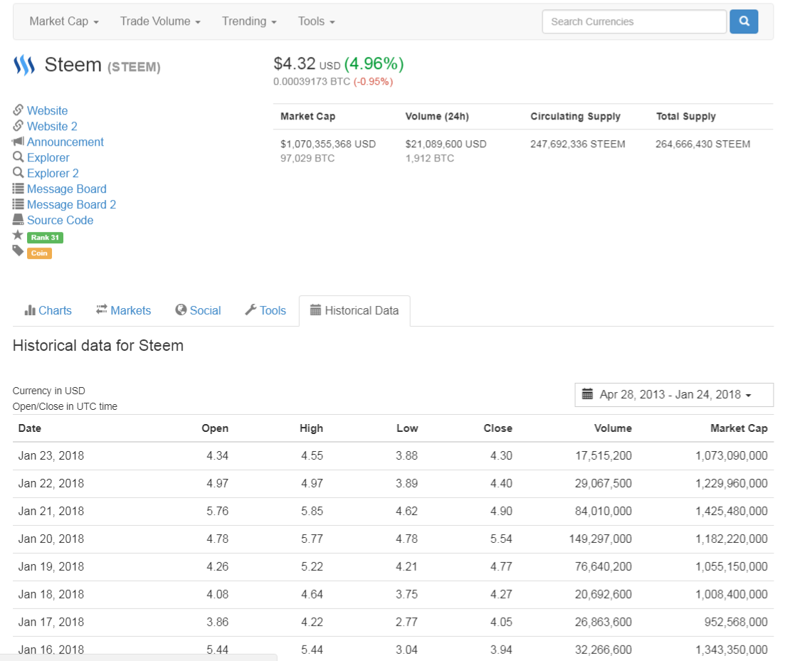 https://coinmarketcap.com/currencies/steem/historical-data/?start=20130428&end=20180124