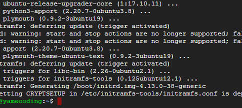 그러다 덜컥 멈출겁니다. ***Do you want to continue? [Y/n]***라고 묻네요.