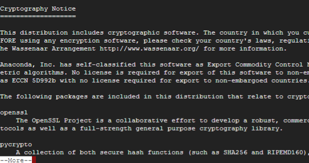 해줍니다. 그리고 **정지된 텍스트 화면이 나오는데, 하단에 보면 --More--**이 보일겁니다. 아래와 같은 화면이 보일때까지 엔터를 연타로 몇 번 쳐주세요.