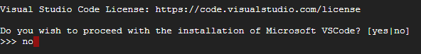Microsoft VSCode 설치하겠냐고 묻네요? 상큼하게 no 응아니야를 시전해줍시다.