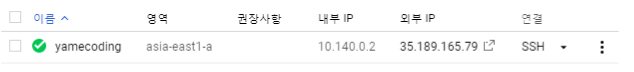 그리고 기억하시죠? 연결 아래 SSH 버튼을 눌러주면 임대한 VM인스턴스에 접속하게 됩니다.
