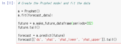 단 코드 6줄만 추가로 입력하면 됩니다. 갓fbprophet
