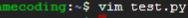 메모장을 불러오는 명령어가 vim이고 레시피 이름 test 뒤에 .py 확장명을 붙여줘야 컴퓨터가 파이썬 코드가 들어있음을 파악할 수 있어요!