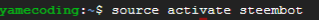 새롭게 검은 화면을 띄우면 저번 시간에 입력줄 맨 앞에 있던 (steembot)이 없어졌음을 확인 할 수 있을겁니다. Conda를 불러서 스팀봇 요리를 위해 미리 준비해둔 세팅을 다시 펼치라고 해야겠죠?