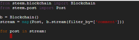from steem.blockchain import Blockchainfrom steem.post import Post