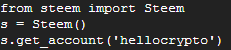 from steem import Steems = Steem()s.get_account('프린이계정')