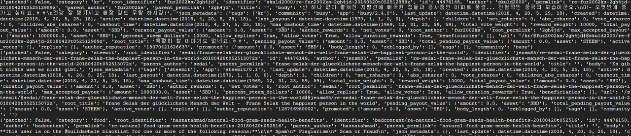 python3 blockpost.py 그 결과는, 복잡하고 긴 양의 텍스트가 돌아옵니다.