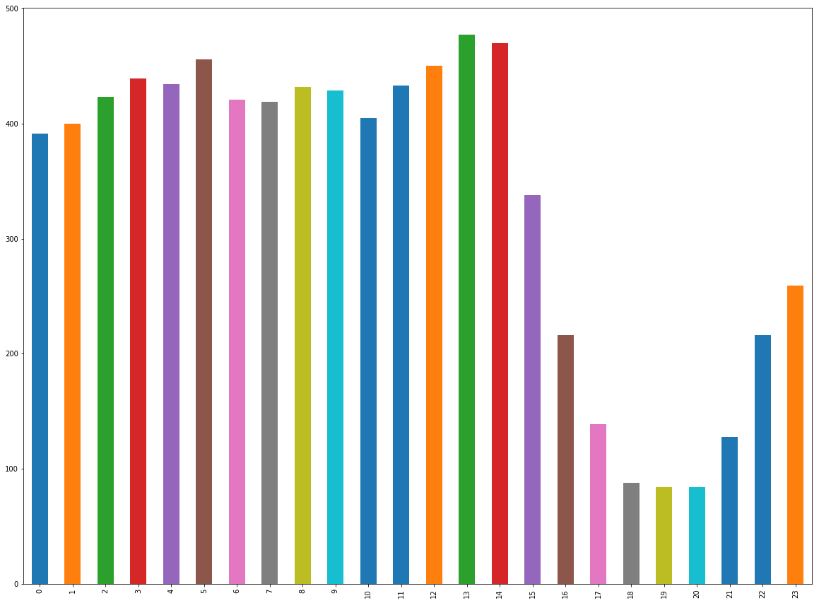 황금시간대는 22시와 18시가 압도적입니다. 그리고 준(?)황금시간대는 23시, 12시, 19시네요.