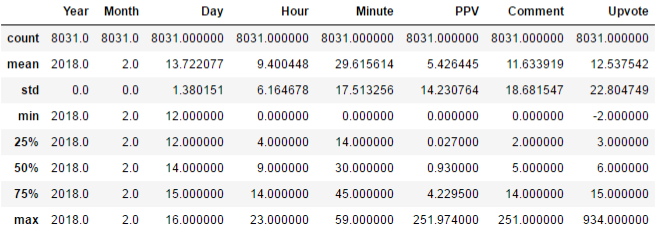 - 글 하나당 평균 약 5.43 PPV, 댓글 11.63개, 업보트 12.54
