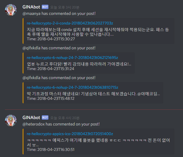이미 잘 사용하고 계시는 분들도 많겠지만, 저처럼 뒤늦게나마 사용하실 분들에게 지나봇을 소개합니다 :) 스팀 계정은 @ginabot이네요.