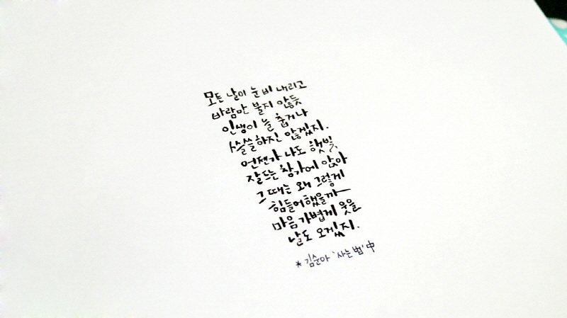 이전 글에 이어 오늘의 캘리 포스팅 마저 올립니다.