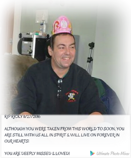 herms(25)•in #life•3343 days agoRIP Ricky 11/27/2016Gone way to soon. You were only 44 and had many more years of life ahead of you to look forward to. Love you brother...40$0.00herms(25)•in life•3343 days agoRIP Ricky 11/27/2016Gone way to soon. You were only 44 and had many more years of life ahead of you to look forward to. Love you brother...40$0.00