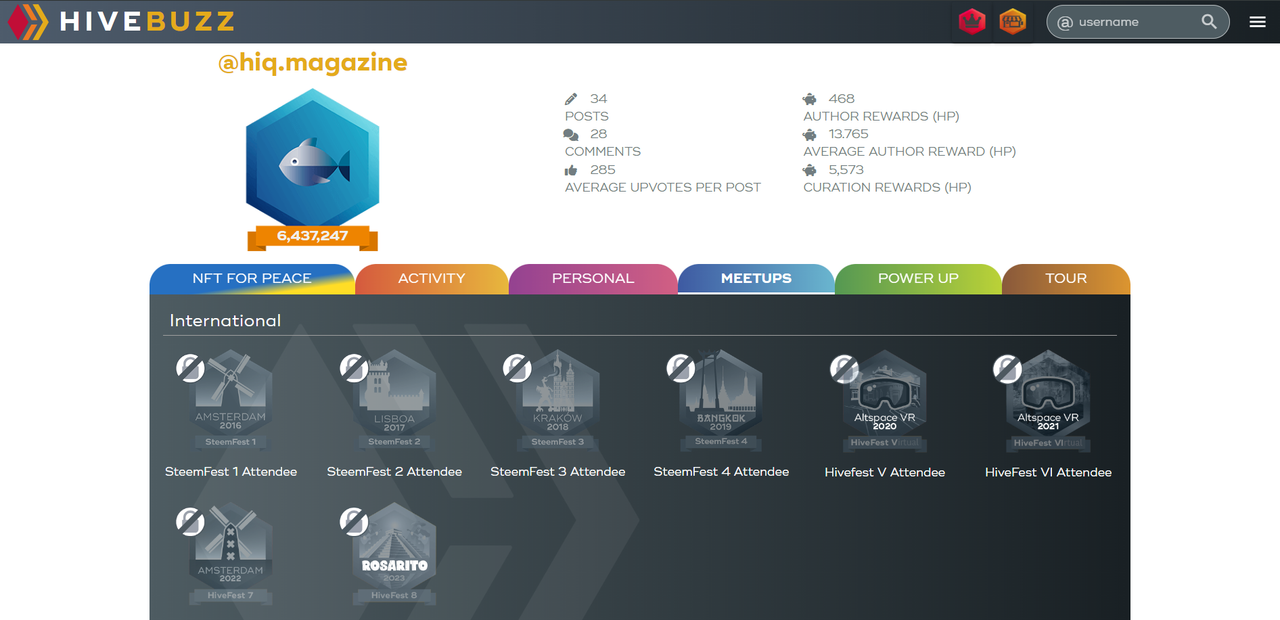 In the Meetups section, there are badges for Hive festivals. If you have attended a festival, you can view the badge here. (Editor's note: If you have several of these badges, you are pretty stylish!)