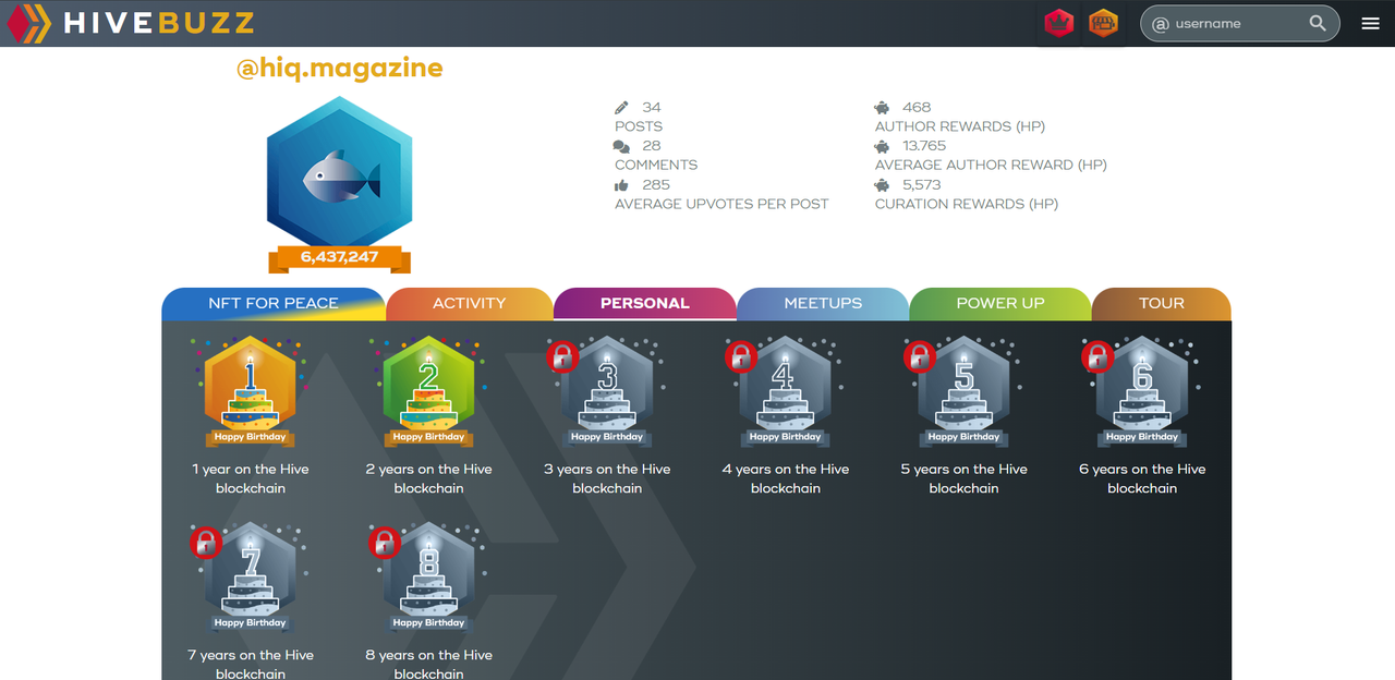 In the personal section, you can see how many years you have been on Hive and badges for Hive-related events. Special badges such as the World Cup are also available here.