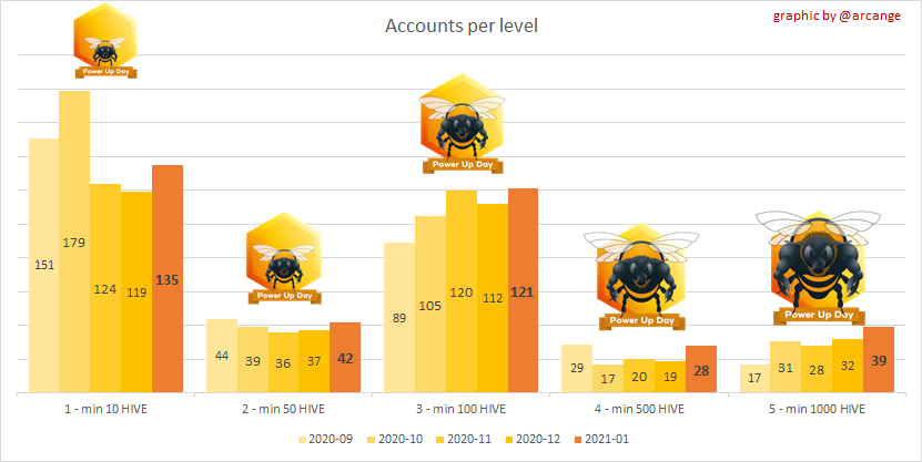 In each level, we do better than the previous month, with a new record for levels 3 and 5, with 39 big stakers who got the Jumbo-Bee thanks to a power-up of at least 1000 HIVE!