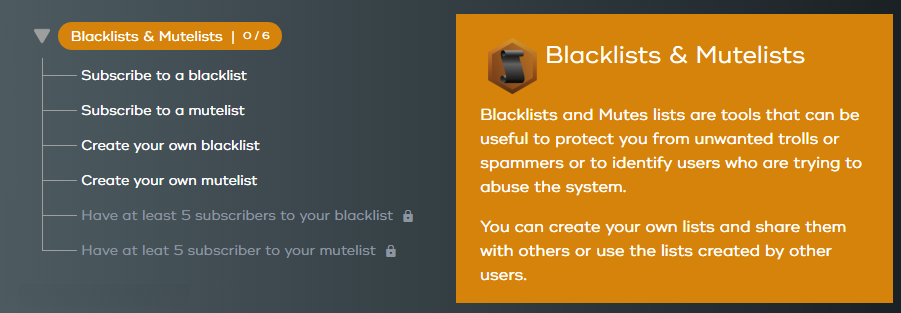 Decentralized Blacklists and Mutes lists are tools that can be useful to protect you from unwanted trolls or spammers or to identify users who are trying to abuse the system.