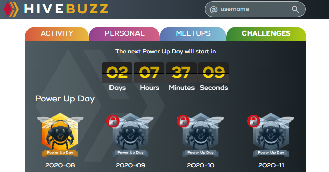 We have added new buttons to the HiveBuzz website to allow the user to quickly access these parts of the site.New Challenge tab and Power Up Day countdown