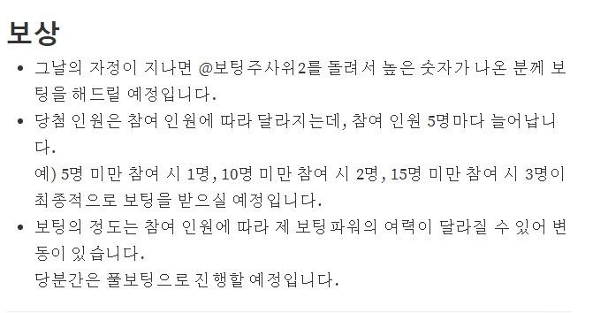 추첨을 통해 보팅을 해주시는 이벤트입니다.