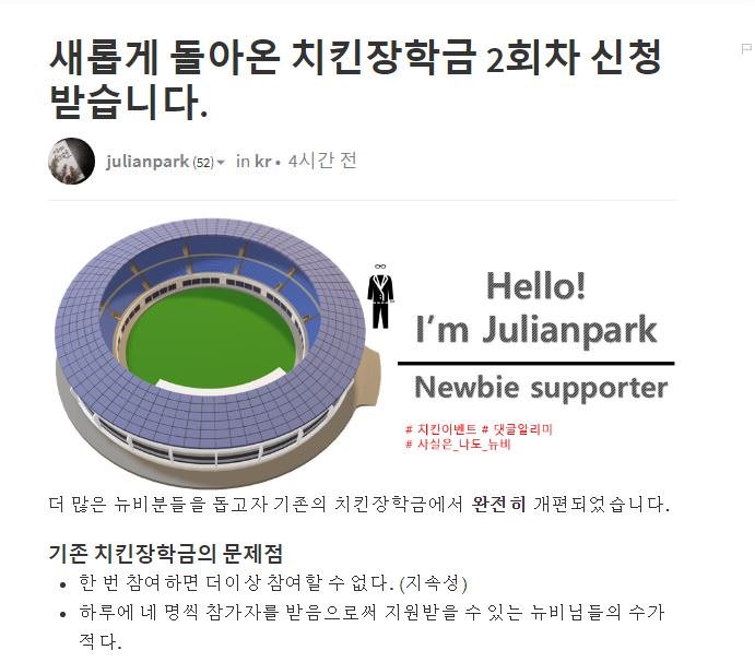 정성스럽게 쓴 글에 치킨 한마리 보상이 나온다니,,