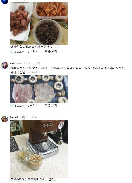 댓글창에 이 찬란한 음식들이 보이시죠??