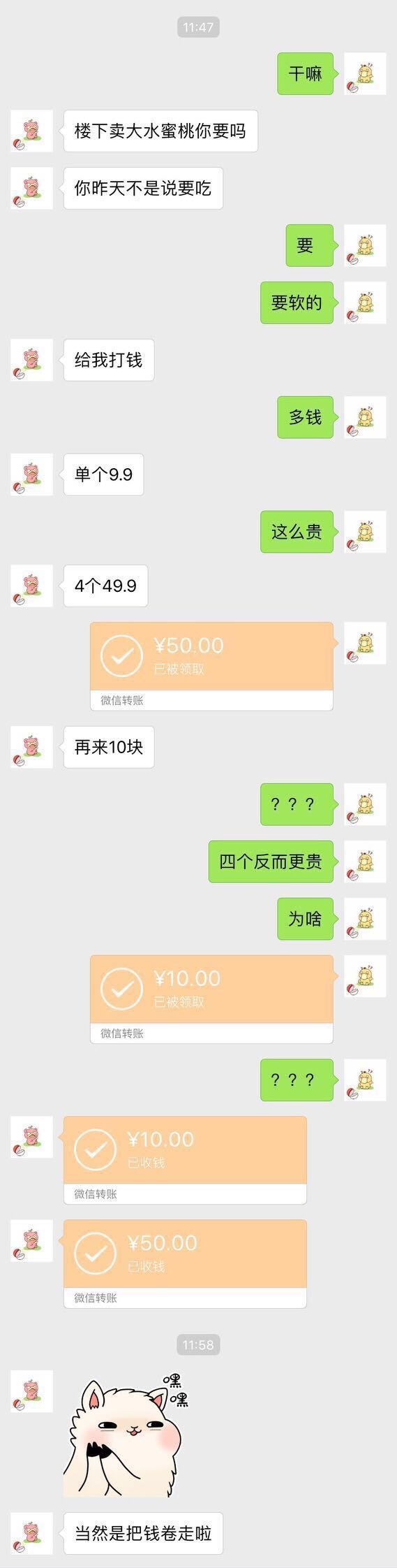 哇,连买桃子的钱都不留给他,你球也太惨了点吧。