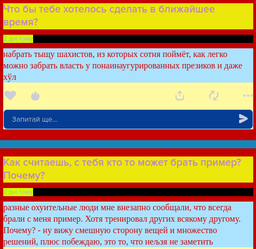 ili0braz(25)•in #askoteka•1968 days agoalways-like-obsessionтрихпит | питання | відповіді| |-|-| | "Тобі більше б хотілося жити вічно чи прожити десять разів по сто років?" | вічно, як всім розумним істотам з нормаљних ц...5ili0braz(25)•in askoteka•1968 days agoalways-like-obsessionтрихпит | питання | відповіді| |-|-| | "Тобі більше б хотілося жити вічно чи прожити десять разів по сто років?" | вічно, як всім розумним істотам з нормаљних ц...5