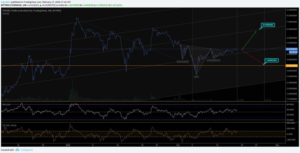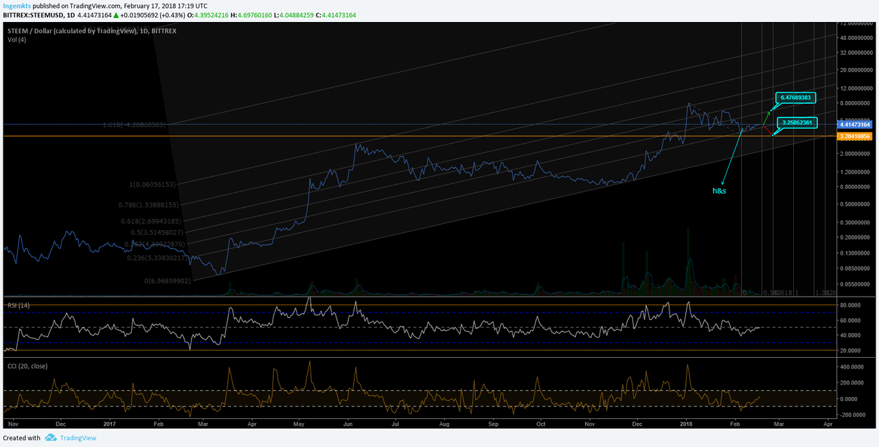 Steem is going up steadily and slowly along with Bitcoin, so it is expected Steem follows any retracement to make double bottom, but if you see closer the chart there is a perfect bullish h&s, nevertheless BTC is about to correct.