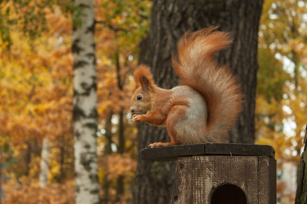 There is a small park near my house, where I like to spend time. Such quiet and cozy places are really difficult to find in big and bustling cities, but I was lucky) This park is clean and beautiful, but the coolest thing is that squirrels live in it) One day I was fortunate enough to come closer to take a picture of this wonderful animal, the squirrel wasn't frightened at all and continued to do it's things while I was trying to catch a better shot. In the end, she became bored with it and she began to swear until I left) To be honest, I was surprised at such a small animal with a character, the squirrel looked so menacing that seemed it began threaten me with a fist) Feeling uncomfortable, I did not bother her and went to walk on)