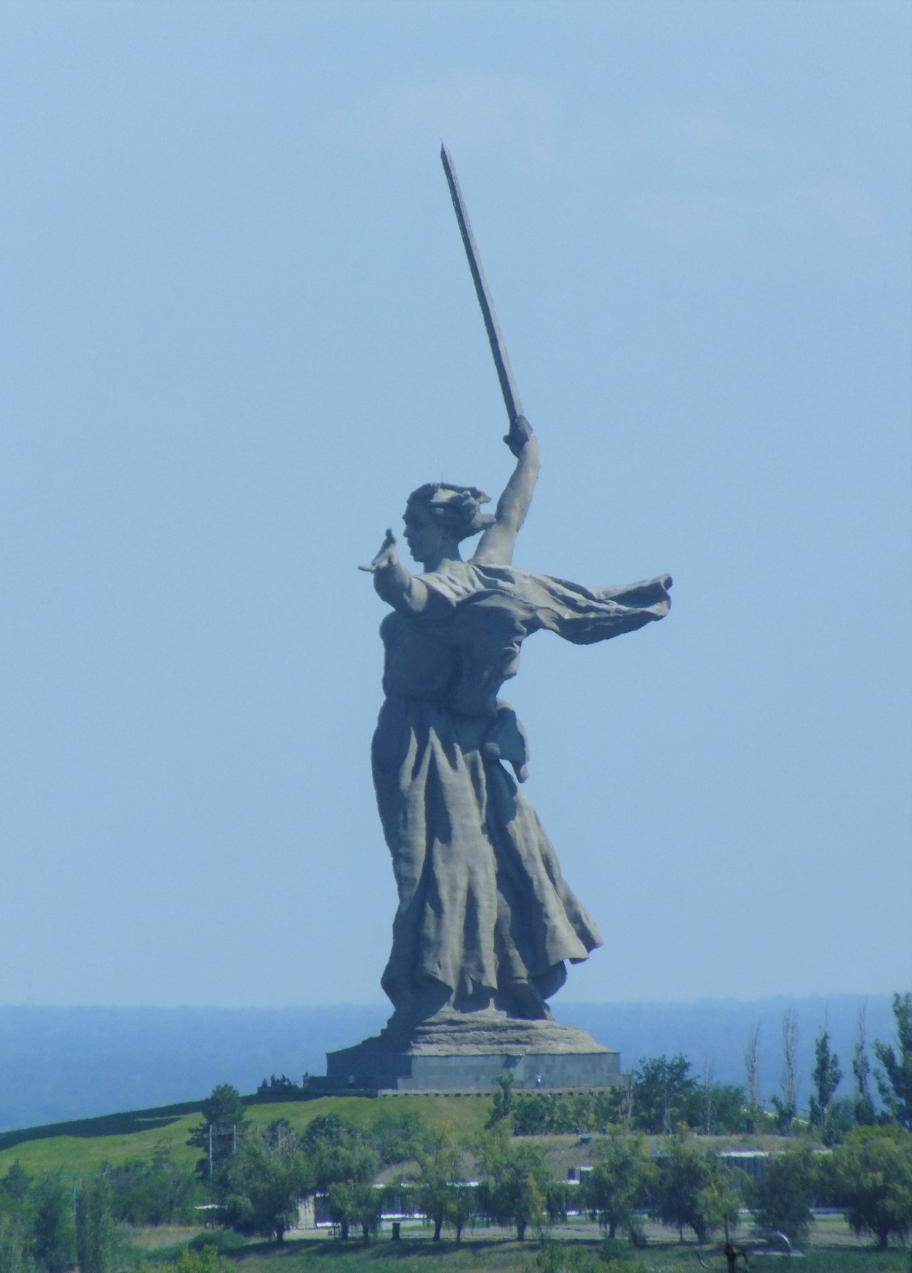 Volgograd is interesting sity. It has the many landmarks. The most biggest among them is memorial complex "The Mamaev Kurgan". This landmark was built in 1967. The symbol of this landmark is the sculpture "The Motherland" 85 meters in height. This photo made in summer-2013: