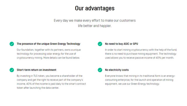 TLS Group is a leading provider of cryptocurrency and portfolio management solutions in the clean energy segment. We strive to be one of the largest mutual funds with our partners, and we already have a unique technology for processing solar energy to use cryptocurrency mining. The technology we use will allow investors to receive passive income of 40% per month.