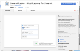 james1987(25)•in #steemit•3418 days agoDisplay desktop notifications once new votes and comments on Steemit.com are availableSteemification offers the long missing notifications from the social media platform steemit.com. The development is ongoing and the extension will be improved o...60$0.00james1987(25)•in steemit•3418 days agoDisplay desktop notifications once new votes and comments on Steemit.com are availableSteemification offers the long missing notifications from the social media platform steemit.com. The development is ongoing and the extension will be improved o...60$0.00