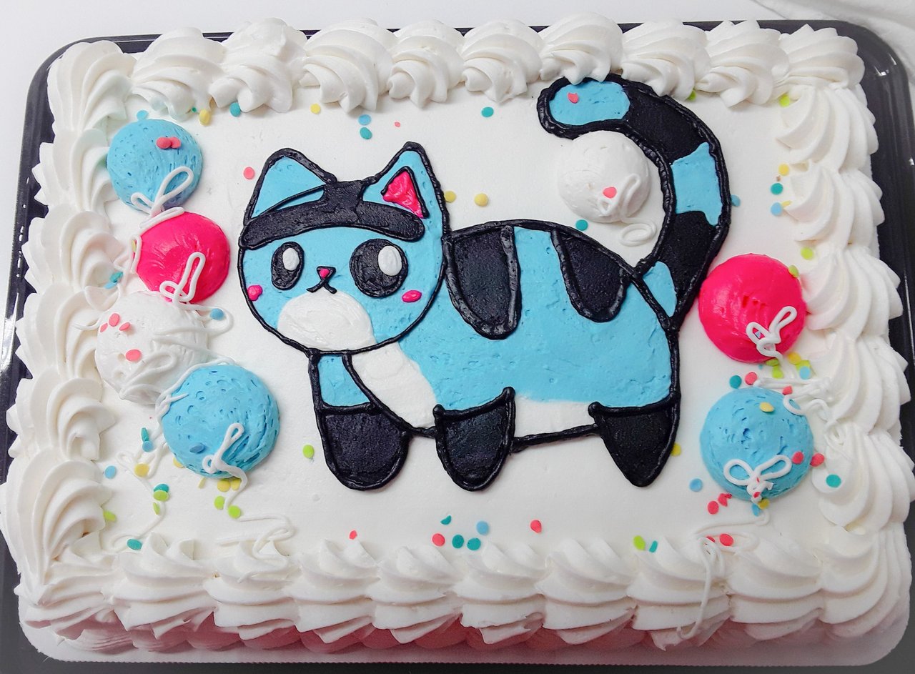 So, my birthday haul was kinda light this year. My aunt took me out to lunch at Godfathers Pizza. My mom got me a Nintendo eshop card and signed me up to go to SGDQ(anyone else go to that?). My mom also ordered me cake. So when we went to pick it up I was surprised to see my character, Kitty on it!XD H O L Y B E A N S
