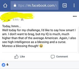 fumegi(25)•in #clever•3024 days ago "My IQ is much, much higher than that of the average American.""My IQ is much, much higher than that of the average American."...61$0.00fumegi(25)•in clever•3024 days ago "My IQ is much, much higher than that of the average American.""My IQ is much, much higher than that of the average American."...61$0.00