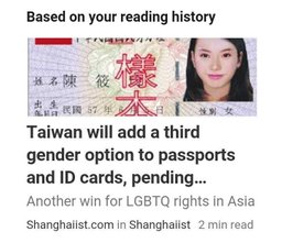 jihanaliamirna(25)•in #history•2851 days agoBased on your reading historyINFORMATION CLICK https://medium.com/@shanghaiist/taiwan-will-add-a-third-gender-option-to-passports-and-id-cards-pending-ministry-approval-a5655d8c2c7a?source=...290$0.00jihanaliamirna(25)•in history•2851 days agoBased on your reading historyINFORMATION CLICK https://medium.com/@shanghaiist/taiwan-will-add-a-third-gender-option-to-passports-and-id-cards-pending-ministry-approval-a5655d8c2c7a?source=...290$0.00