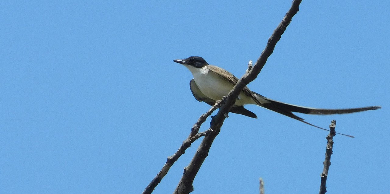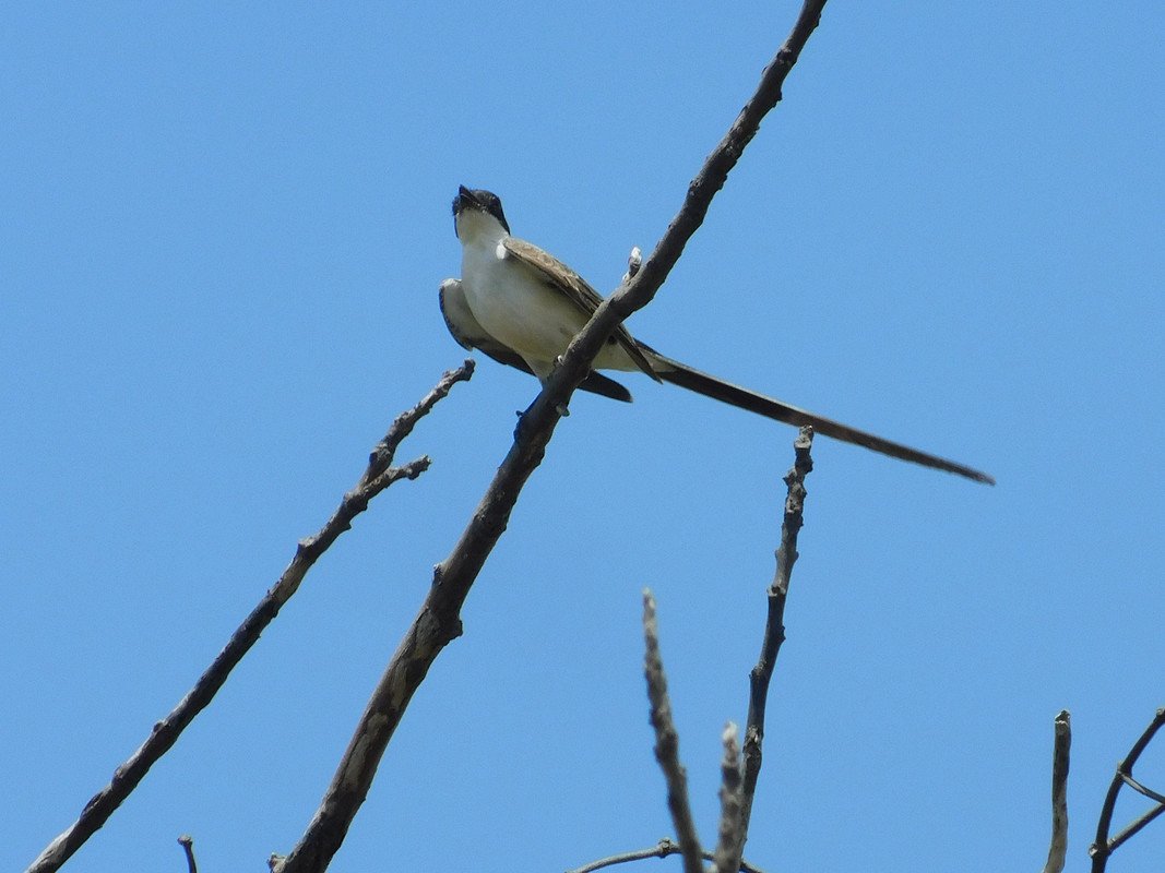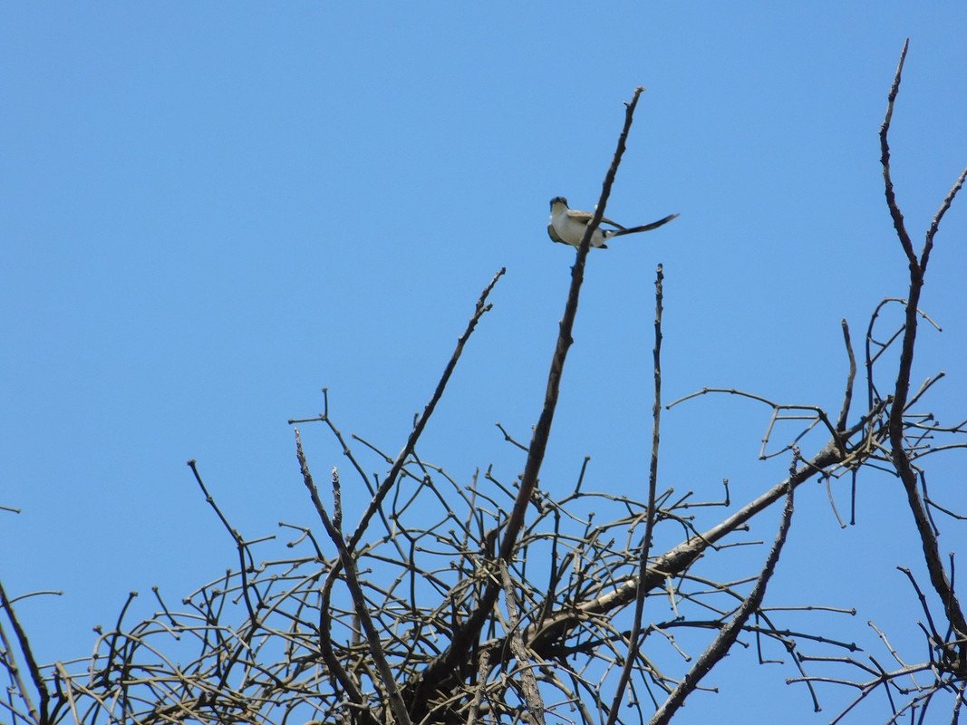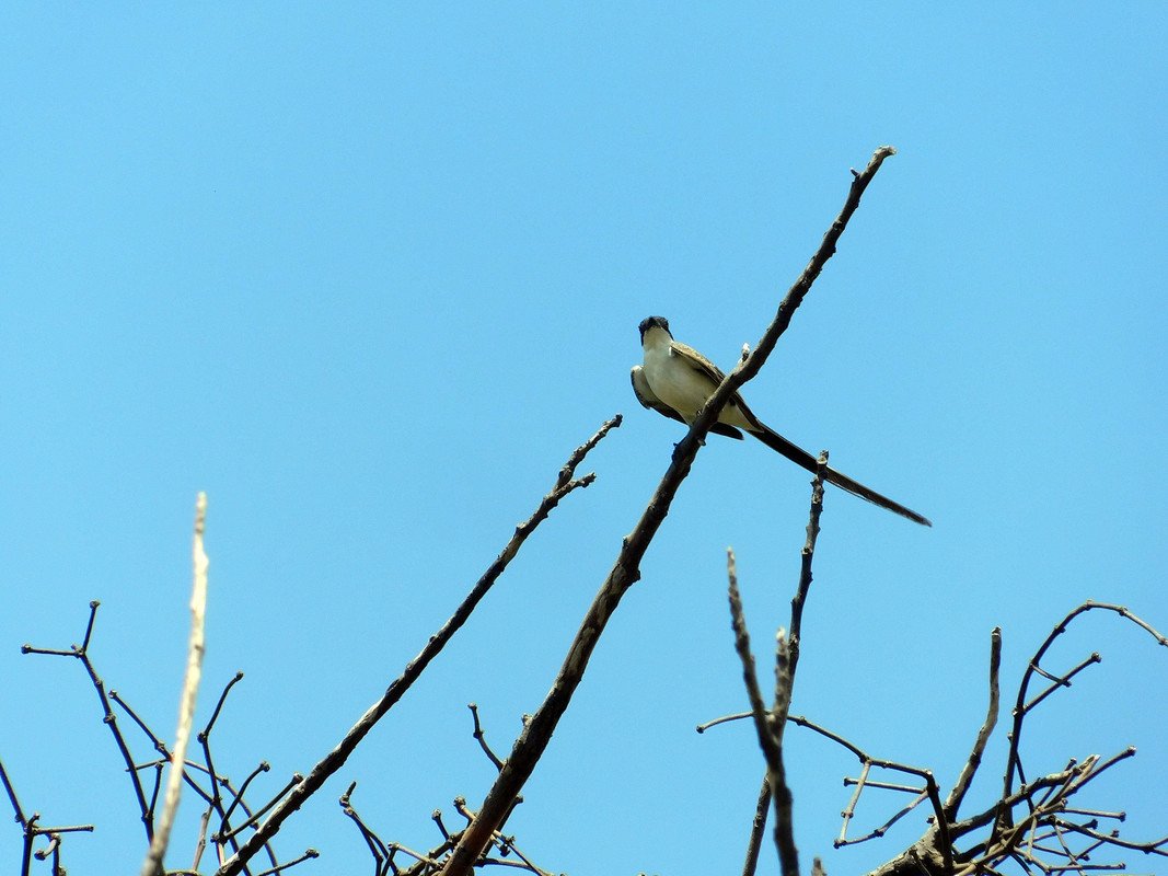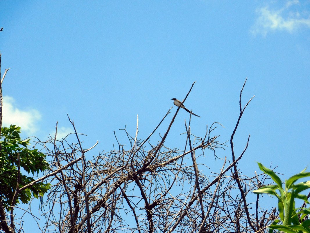El acto tan divertido del ¨zorzal¨: capto la atención de la tijereta¨: y como era una tarde cálida al parecer tenía toda la intención de descender al patio para beber agua, o quizás imitar a la otra ave y darse un baño en el recipiente, quien sabe; lo cierto es que estuve un buen rato escondido para ver si descendida pero nunca sucedió