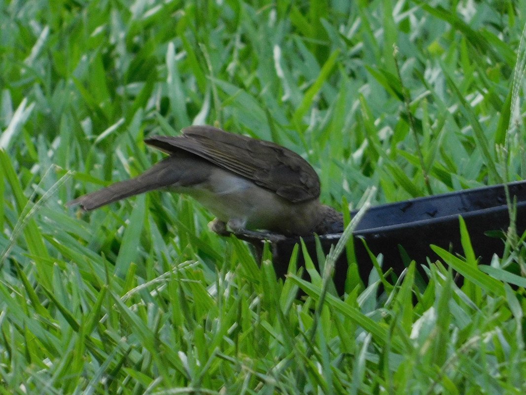 En materia de avistamiento ha sido una semana hermosa, hemos visto a varias especies de aves disfrutar de la tranquilidad del patio trasero. En una de las tantas tardes que fui a visitar el fondo, di con este hermoso ¨zorzal¨: que disfrutaba y bebía un poco de agua fresca; estaba tan entretenido disfrutando del tranquilo momento que ni cuenta se dio que le estuve fotografiando