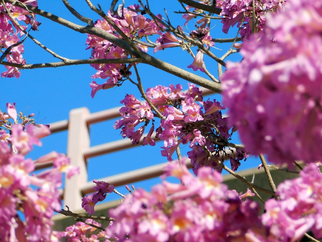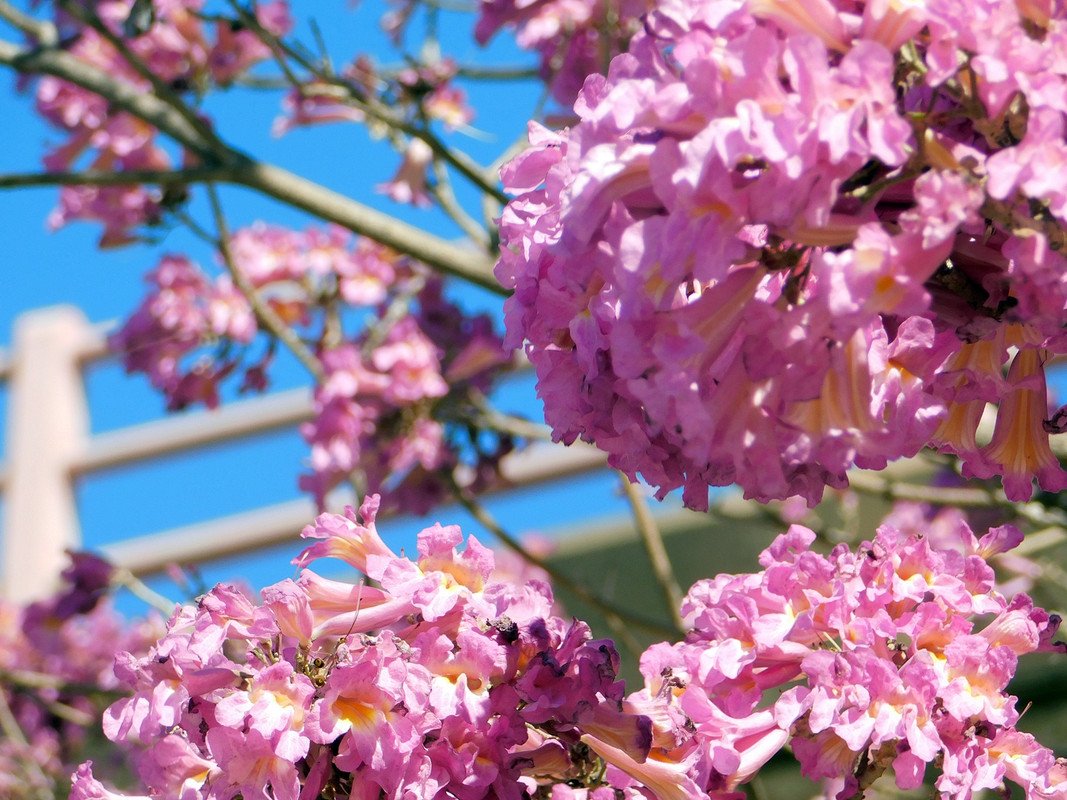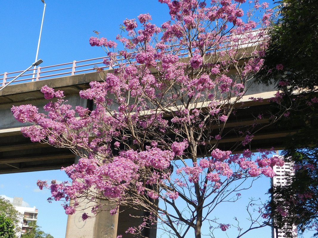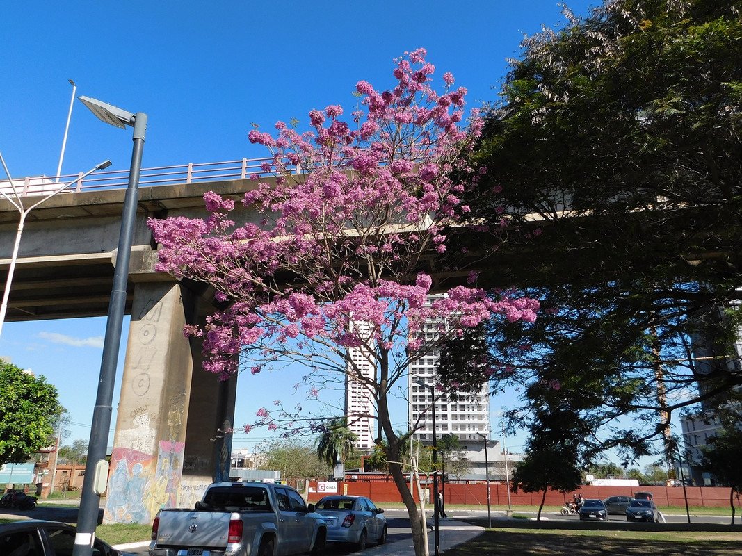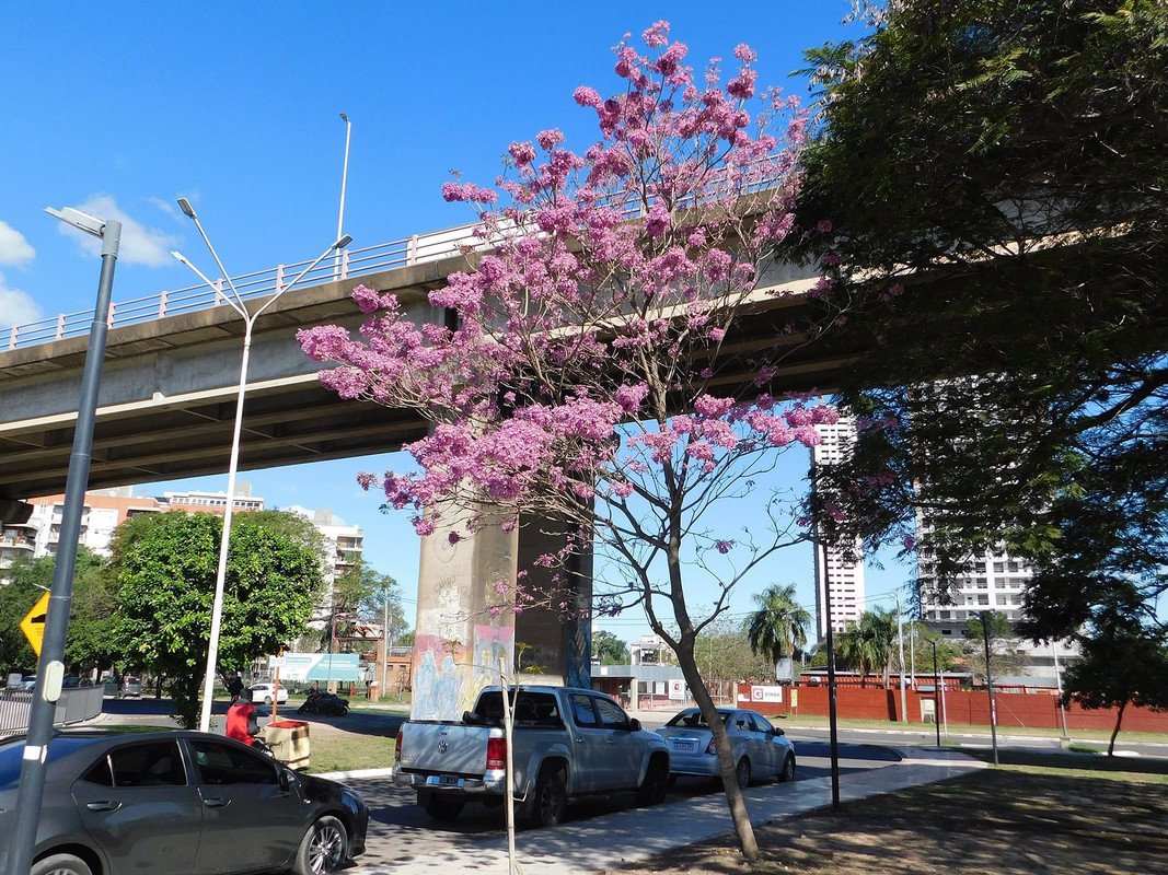 A few days ago I invited my granddaughter Abigail to visit the riverbank. I had heard from advertisements on the web that they had inaugurated a recreational space that looked great; As you know, my granddaughter loves visiting the coast, which meant that she couldn't refuse this family outing; As I mentioned in the title, the "spring" is already noticeable, some of the "pink" "lapachos" are already blooming and the "tops" of the trees are covered with abundant "foliage"