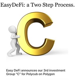 shortsegments(25)•in #hive-167922•1413 days agoEasy DeFi announces our 3rd investment Group “C” for Leofinance's Polycub on Polygon. Easy DeFi is the home of the one step decentralized finance investment process. - Group “C” is our 3rd investment pool and it provides a one step process for ...1276$2.99shortsegments(25)•in hive-167922•1413 days agoEasy DeFi announces our 3rd investment Group “C” for Leofinance's Polycub on Polygon. Easy DeFi is the home of the one step decentralized finance investment process. - Group “C” is our 3rd investment pool and it provides a one step process for ...1276$2.99