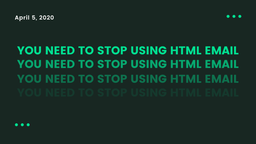 jrswab(25)•in #technology•2161 days agoYou Need To Stop Using HTML EmailHTML email is bad and should be considered harmful. HTML Email Makes Phishing Attempts Easier >HTML emails allow you to make links which hide the URL behind som...383$3.37jrswab(25)•in technology•2161 days agoYou Need To Stop Using HTML EmailHTML email is bad and should be considered harmful. HTML Email Makes Phishing Attempts Easier >HTML emails allow you to make links which hide the URL behind som...383$3.37