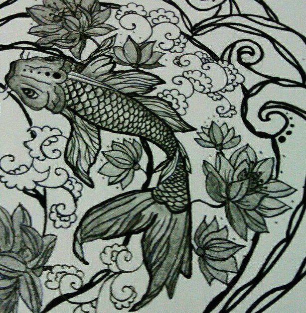 Figure fish I drew in pencil and markers thin and thick.